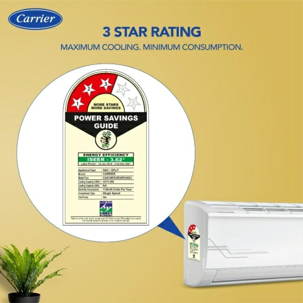 3 Star BEE Rating 2021 : For energy savings upto 15% (compared to Non-Inverter 1 Star)