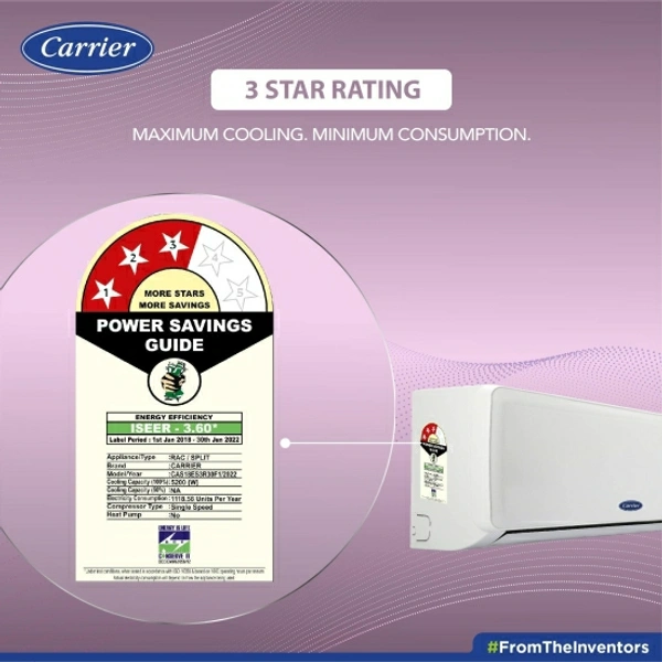 3 Star BEE Rating 2022 : For energy savings upto 15% (compared to Non-Inverter 1 Star)