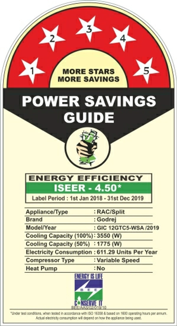 5 Star BEE Rating 2019 : For energy savings upto 25% (compared to Non-Inverter 1 Star)