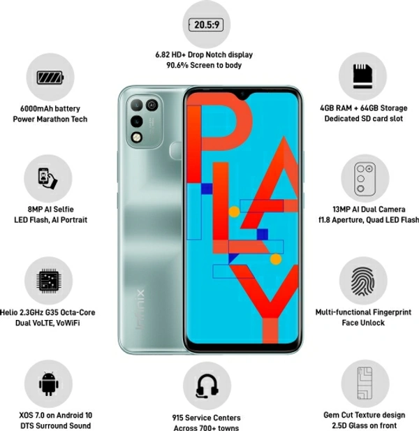 Infinix Hot 10 Play (Morandi Green, 64 GB)
