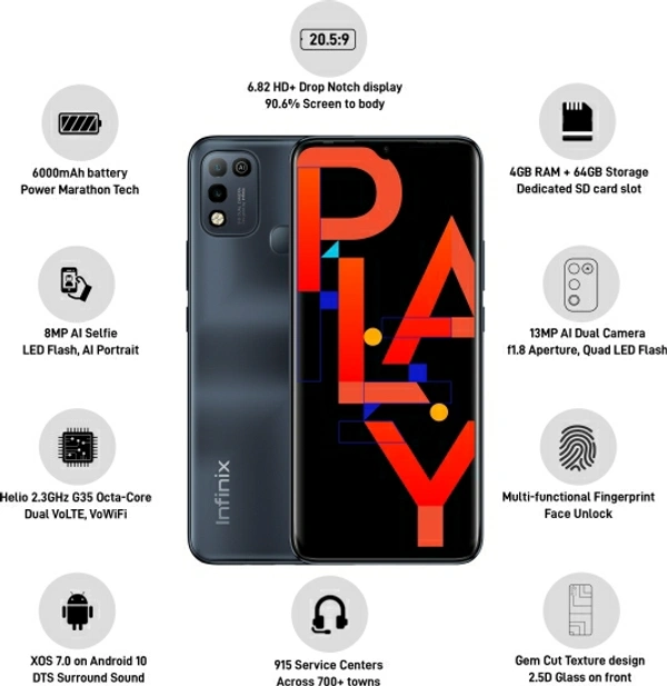 Infinix Hot 10 Play (Obsidian Black, 64 GB)