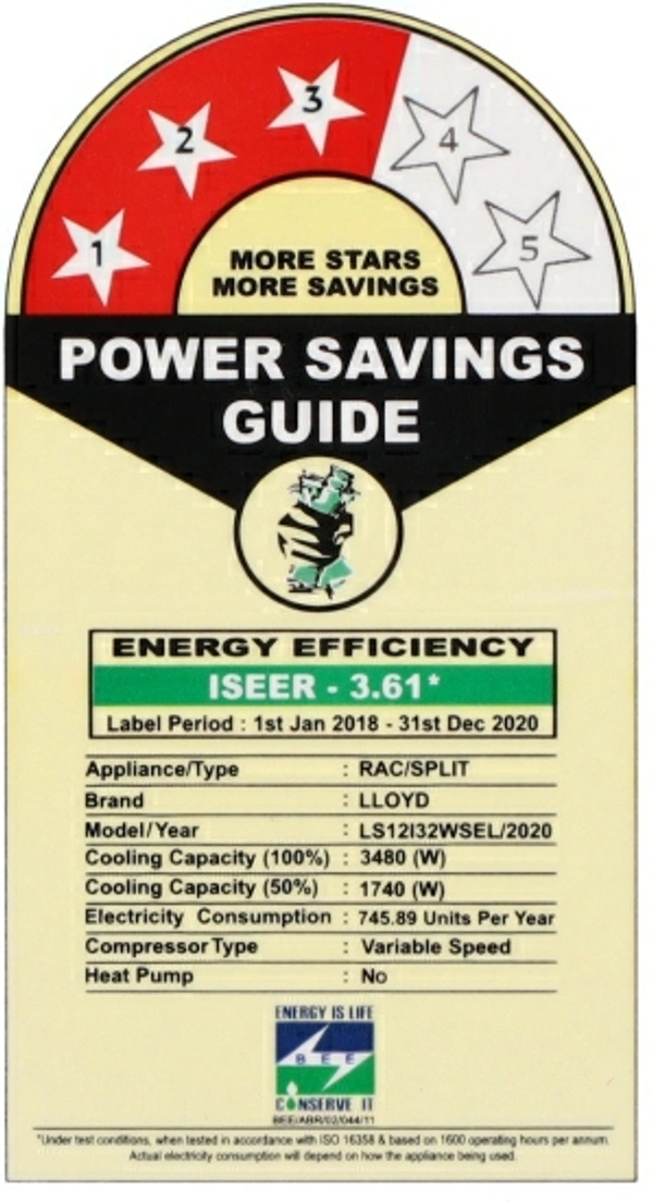3 Star BEE Rating 2020 : For energy savings upto 15% (compared to Non-Inverter 1 Star)