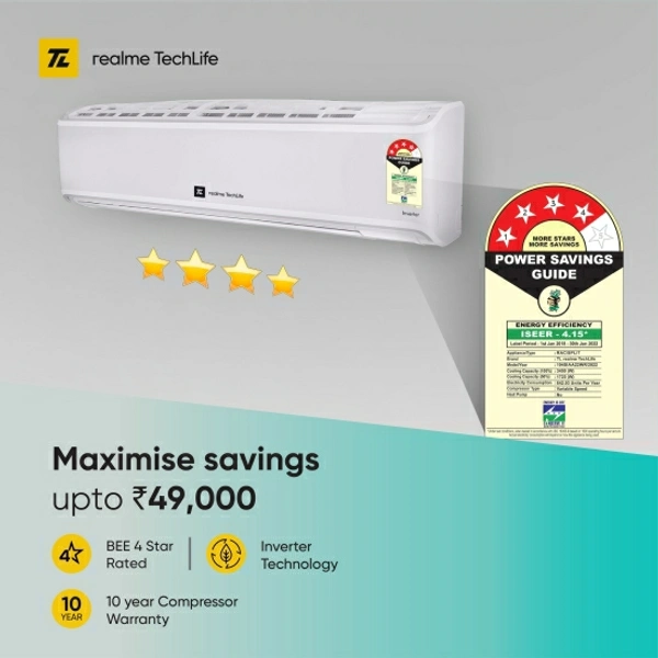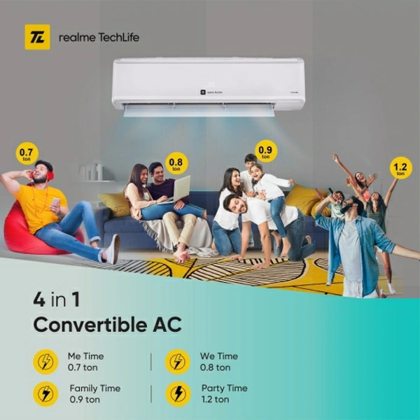 Realme TechLife 4-in-1 Convertible 1 Ton 4 Star Split Inverter , AC - White