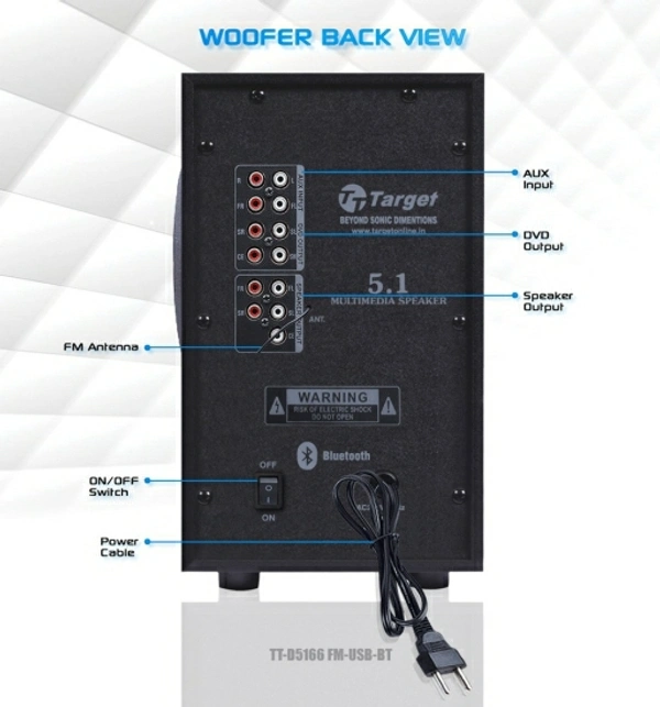 Target TARGET TT-D5166 FM-USB-BT PMPO : 40500 WATTS RMS : 165 WATTS 5.1 SPEAKERS 165 W Bluetooth Home Theatre